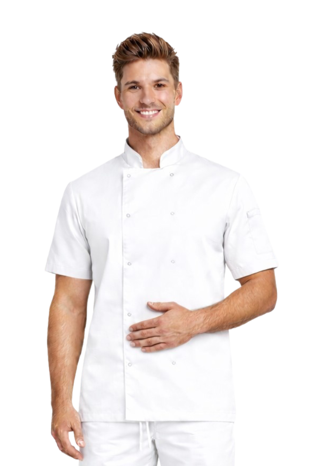 Kuchařská blůza bílá na knoflíky - pružná, s krátkým rukávem