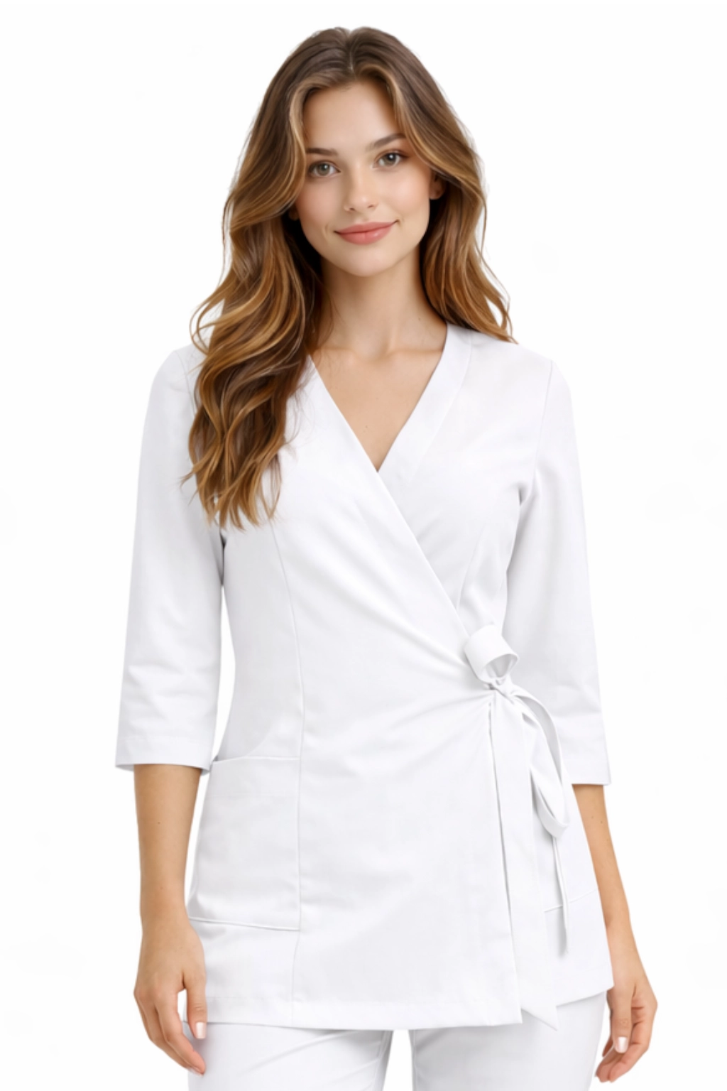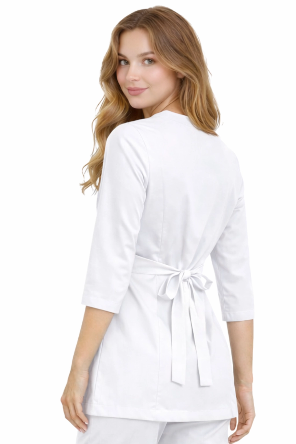 Ženský lékařský tunika BASIC PREMIUM s překlápěcím střihem – bílá, rukáv 3/4