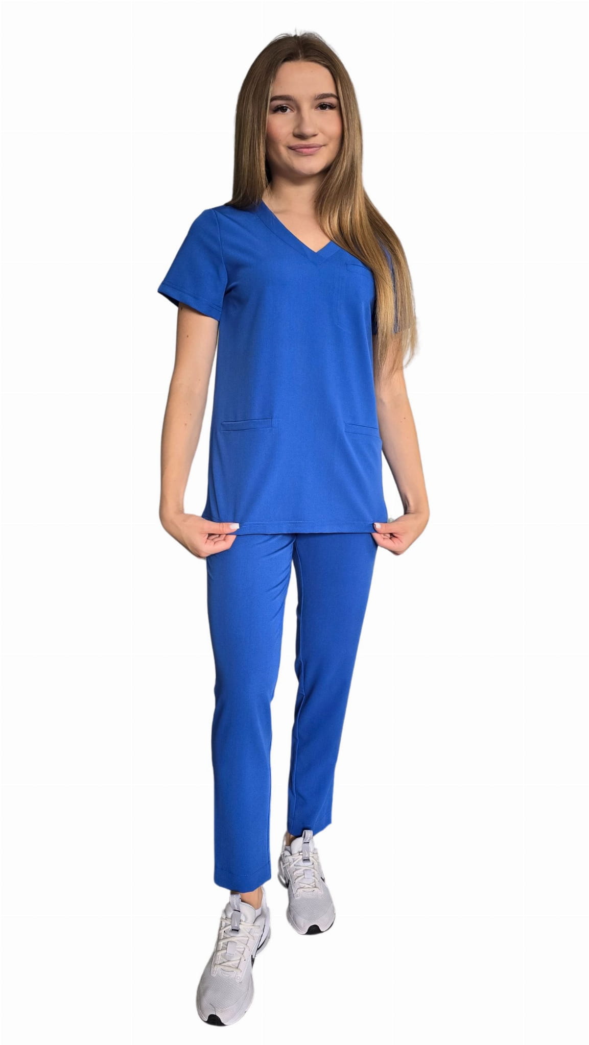 Komplet medického dámského oblečení BASIC PREMIUM v modrém je ideálním řešením pro profesionálky, které si cení pohodlí a elegance v práci. Vyrobeno z vysoce kvalitních materiálů, poskytuje vynikající trvanlivost a pohodlí při nošení po celý den. Díky modernímu střihu a jemnému barevnému provedení, se tento komplet dokonale hodí do aktuálních trendů lékařské módy. Zjistěte, jak snadno můžete spojit funkcionalitu se stylem!