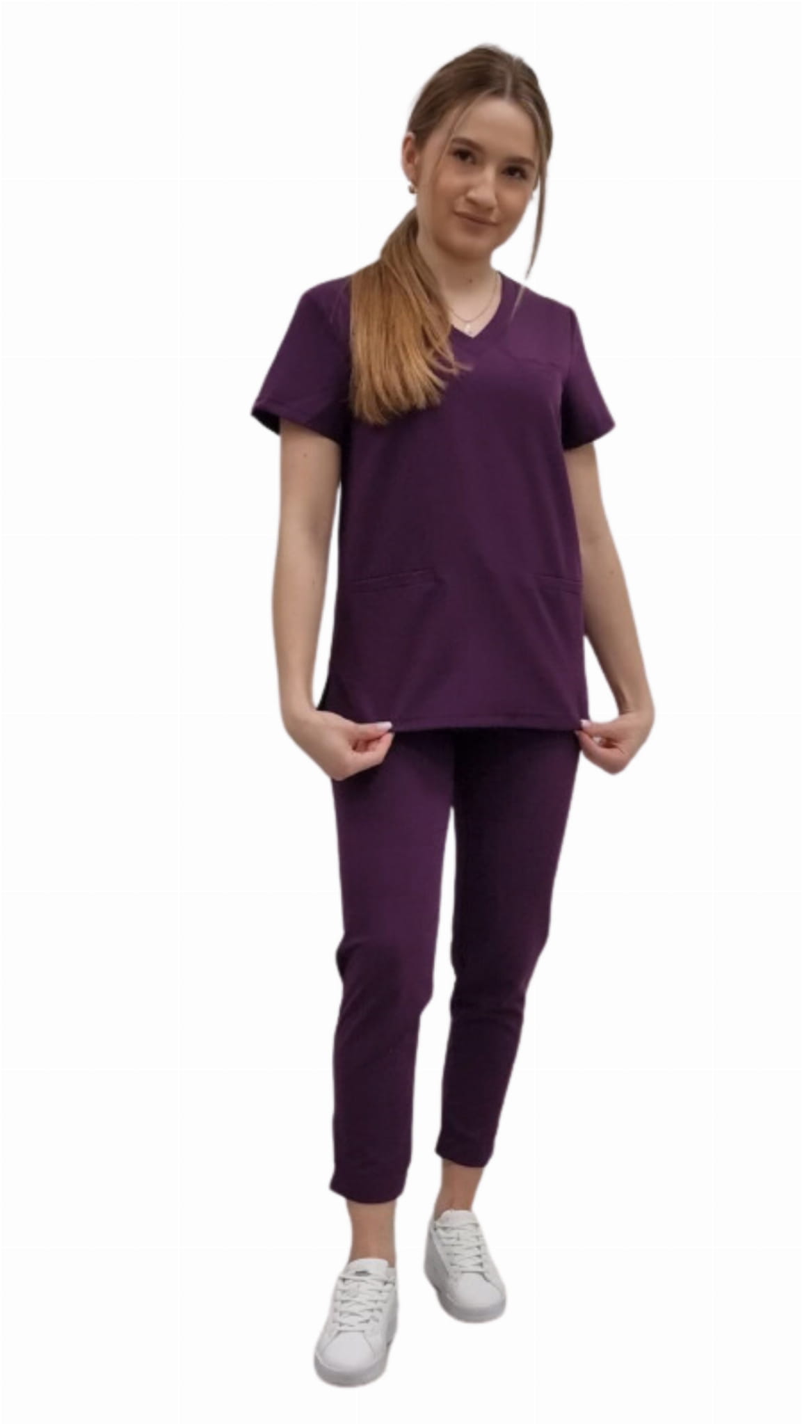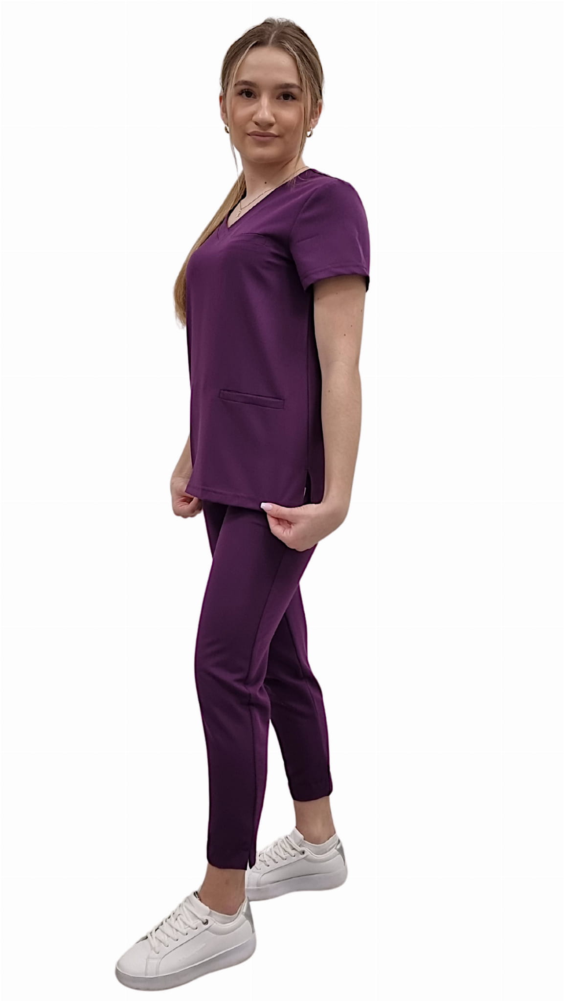 Zdravotnická uniforma BASIC PREMIUM pro ženy ve fialové barvě je profesionální sada, která spojuje moderní styl, pohodlí a vysokou kvalitu tkaniny. Součástí sady je lékařská blúza BASIC PREMIUM a lékařské kalhoty BASIC PREMIUM, které společně tvoří spolehlivý scrubs pro práci v medicínském a beauty sektoru.