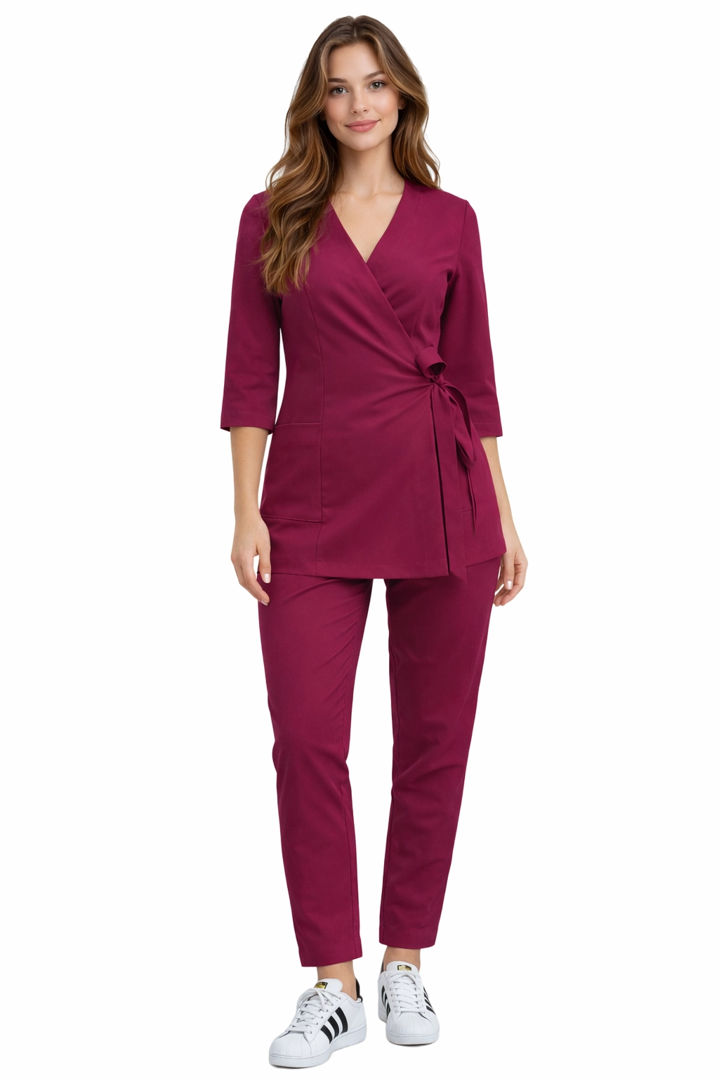 Základní Premium dámský lékařský set v třešňové barvě je harmonickou kombinací elegance, pohodlí a funkčnosti. Sada byla navržena pro ženy pracující v medicínském, kosmetickém a beauty sektoru, které chtějí vypadat profesionálně a zároveň se cítit pohodlně po celý pracovní den.