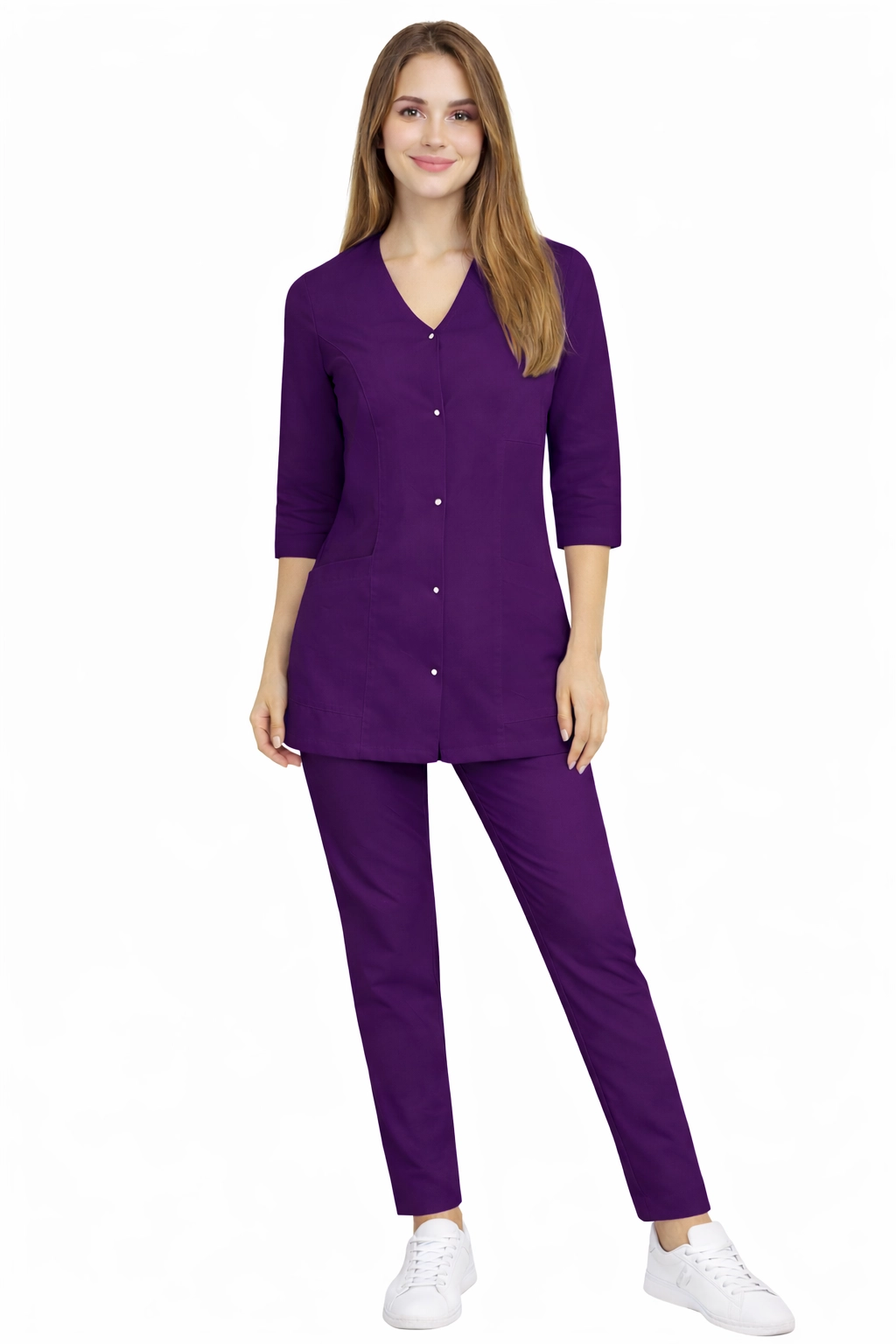 Kompletní zdravotnický kosmetický set s 3/4 rukávovým sáčkem CASUAL PREMIUM fialový