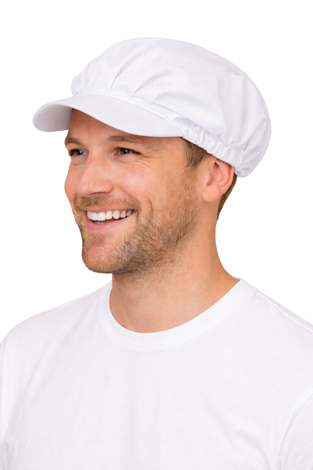Bílá kuchařská klobouk s kšiltem - pohodlná čepice pro gastronomii a pekárny