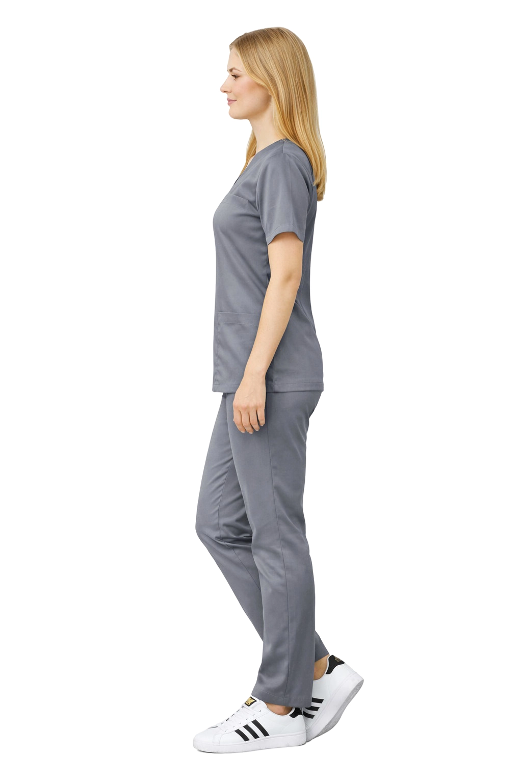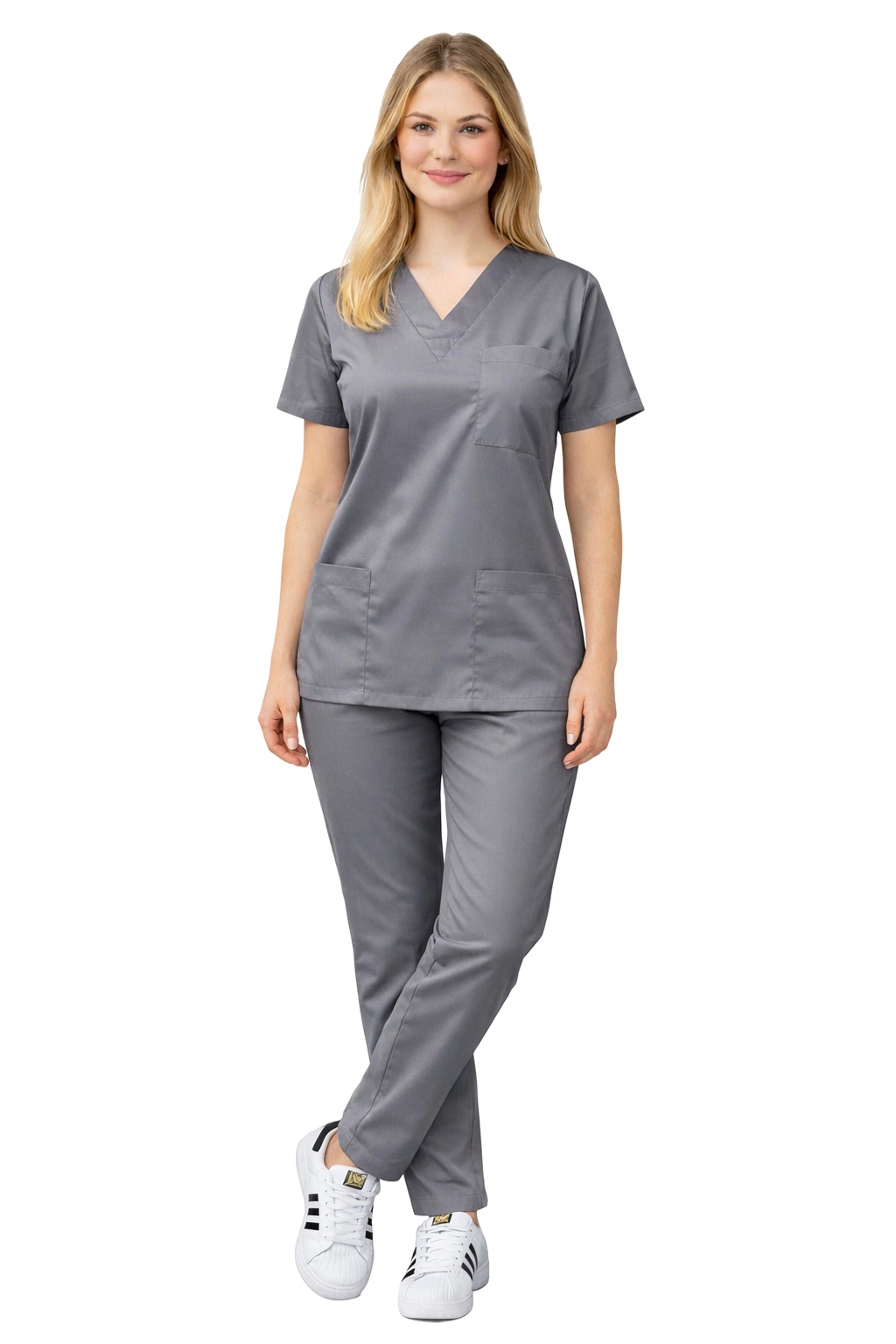 Univerzální šedá barva dodává uniformě profesionální vzhled a dělá z kompletu skvělý kousek pro nemocnice, kliniky, lékařské, stomatologické a veterinární ordinace.