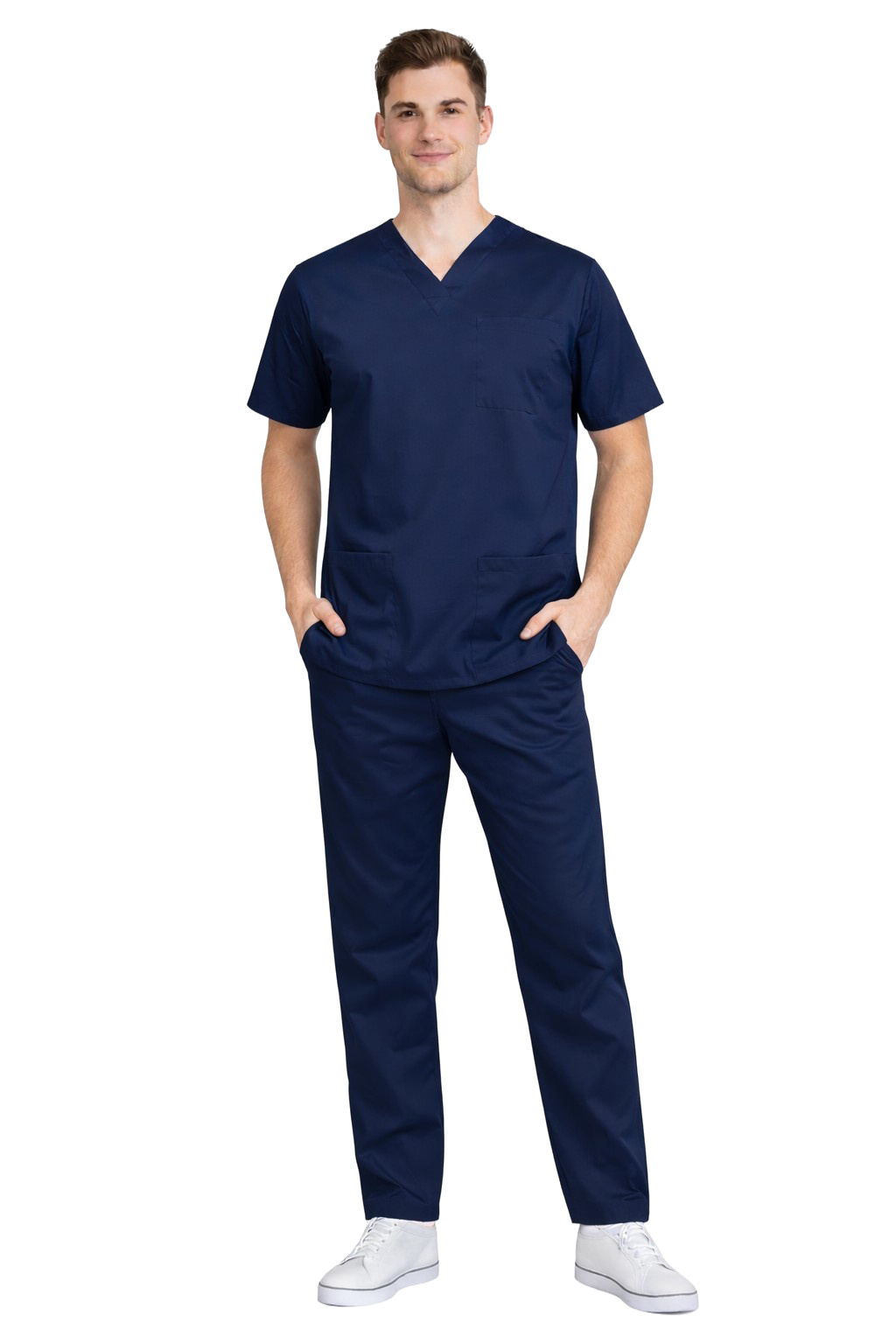 Kompletní mužský zdravotnický soubor námořnická modrá elastický – scrubs premium