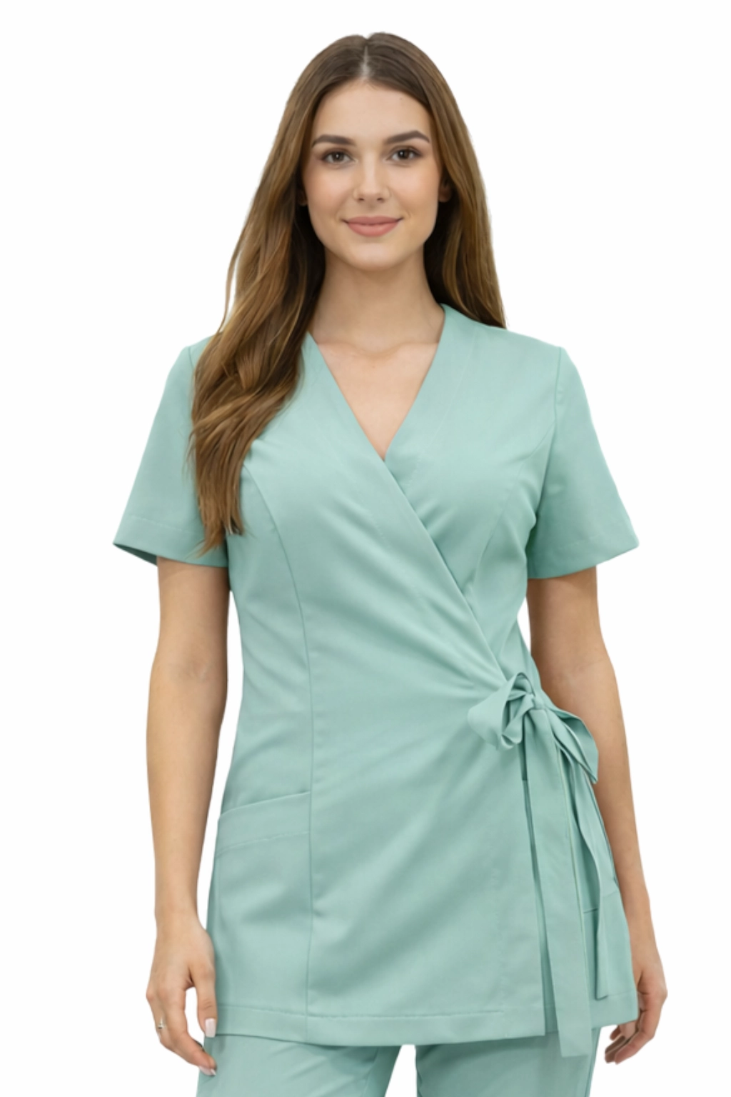 Tunika BASIC PREMIUM s přehozem je moderní a elegantní oděv, který byl vytvořen s ohledem na ženy pracující v oblasti medicíny, kosmetiky a krásy. Tento model kombinuje funkčnost pracovního oděvu s ženským, stylovým střihem, který zdůrazňuje siluetu a poskytuje pohodlí po celý pracovní den.