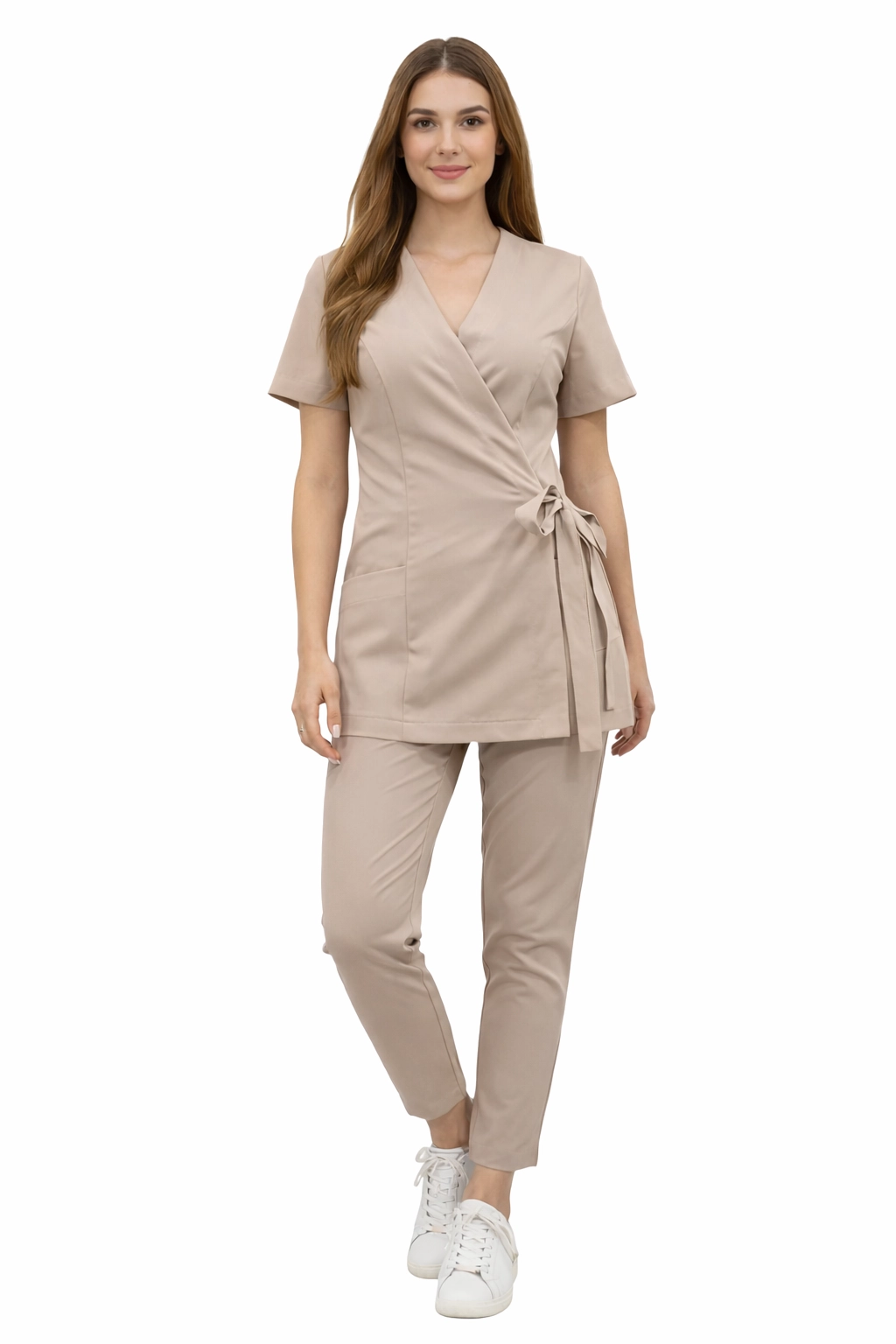 Základní prémiový medicínský set v béžové barvě - uniforma pro ženy v medicínském a kosmetickém průmyslu
