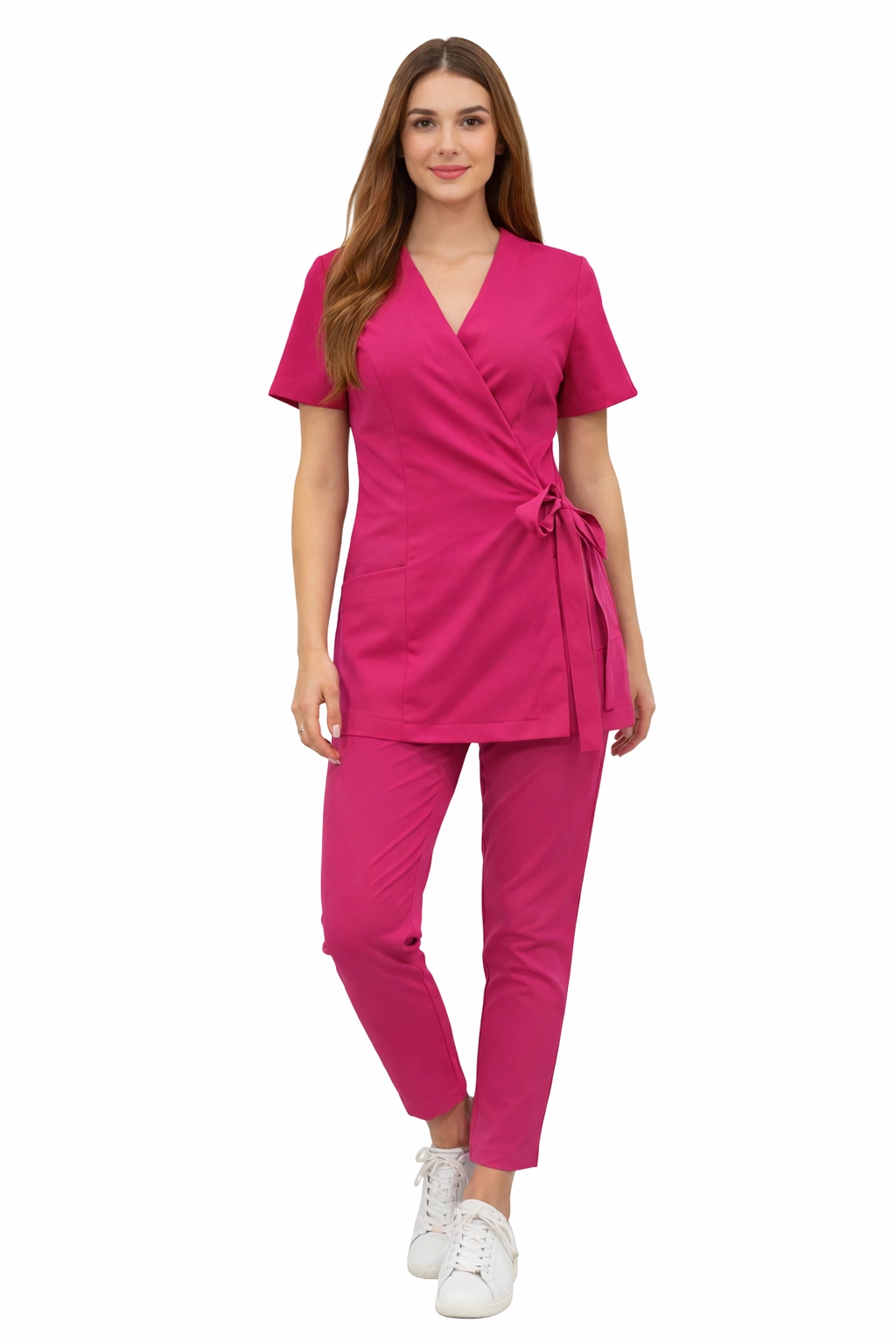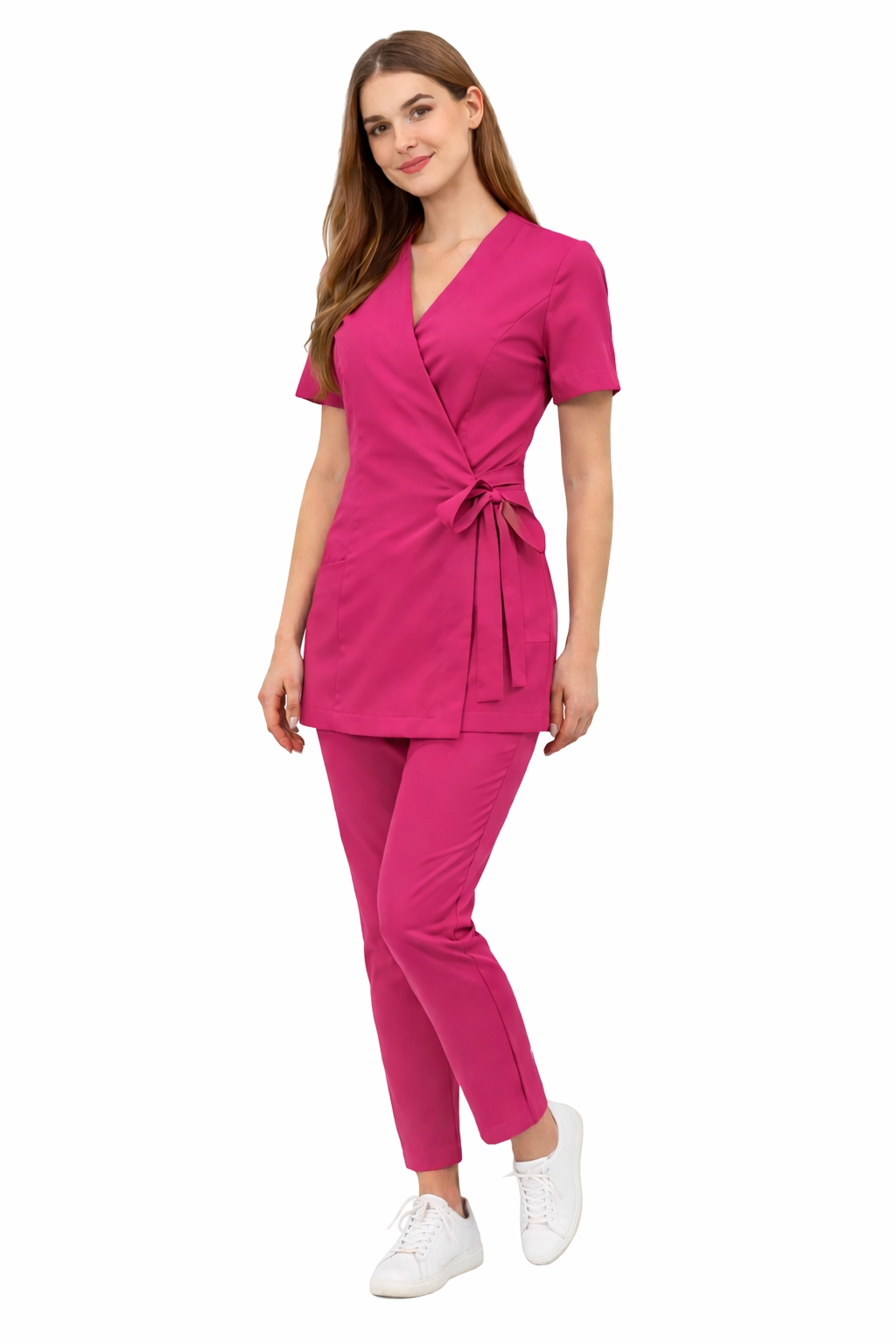 Základní prémiový set je kombinace elegance, funkčnosti a pohodlí - navržený s ohledem na ženy pracující v medicínském, kosmetickém a wellness sektoru. Skládá se z zaklapávacího saka (tunika) a kalhot Basic Premium, vytváří jako celek konzistentní, stylovou medicínskou uniformu.