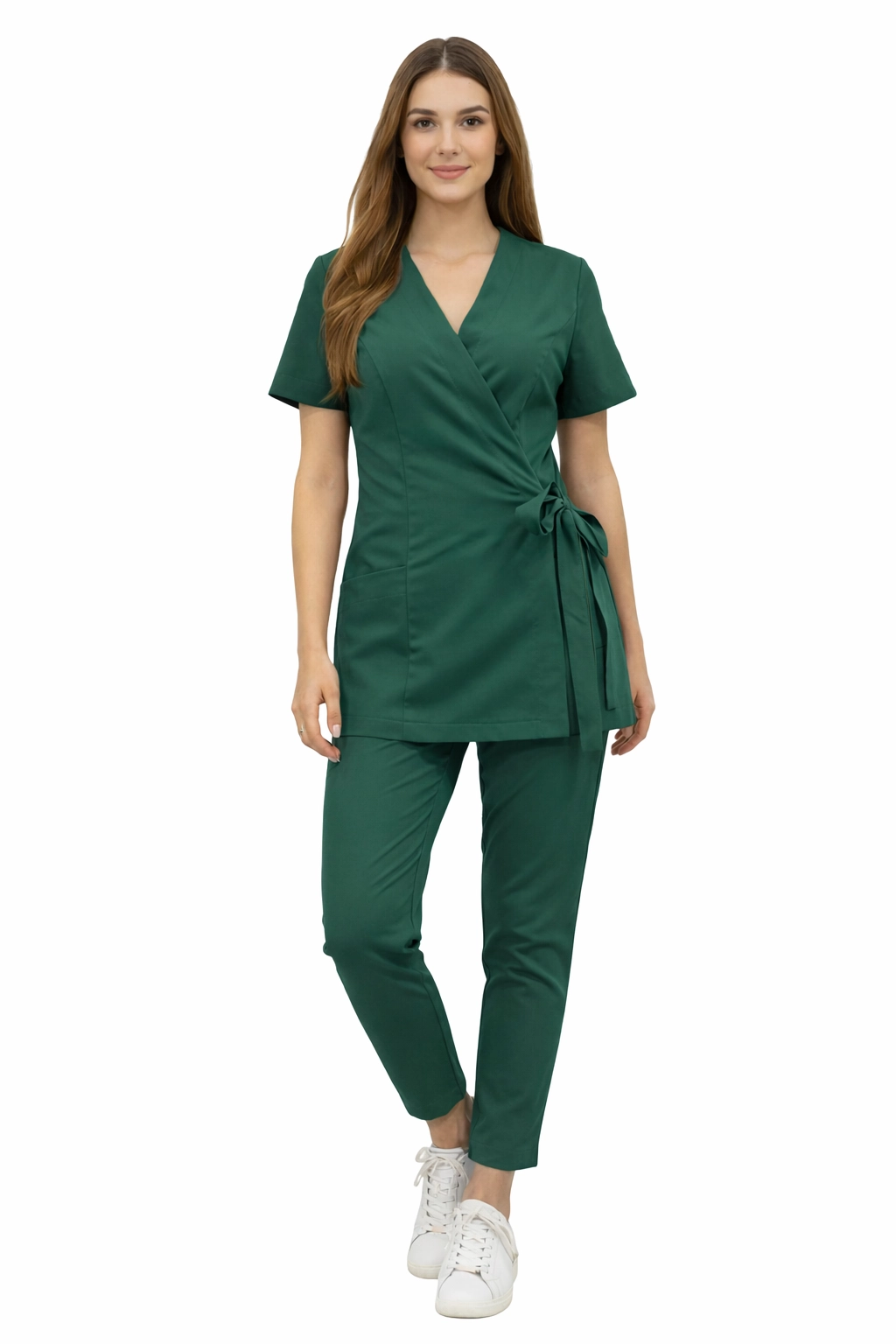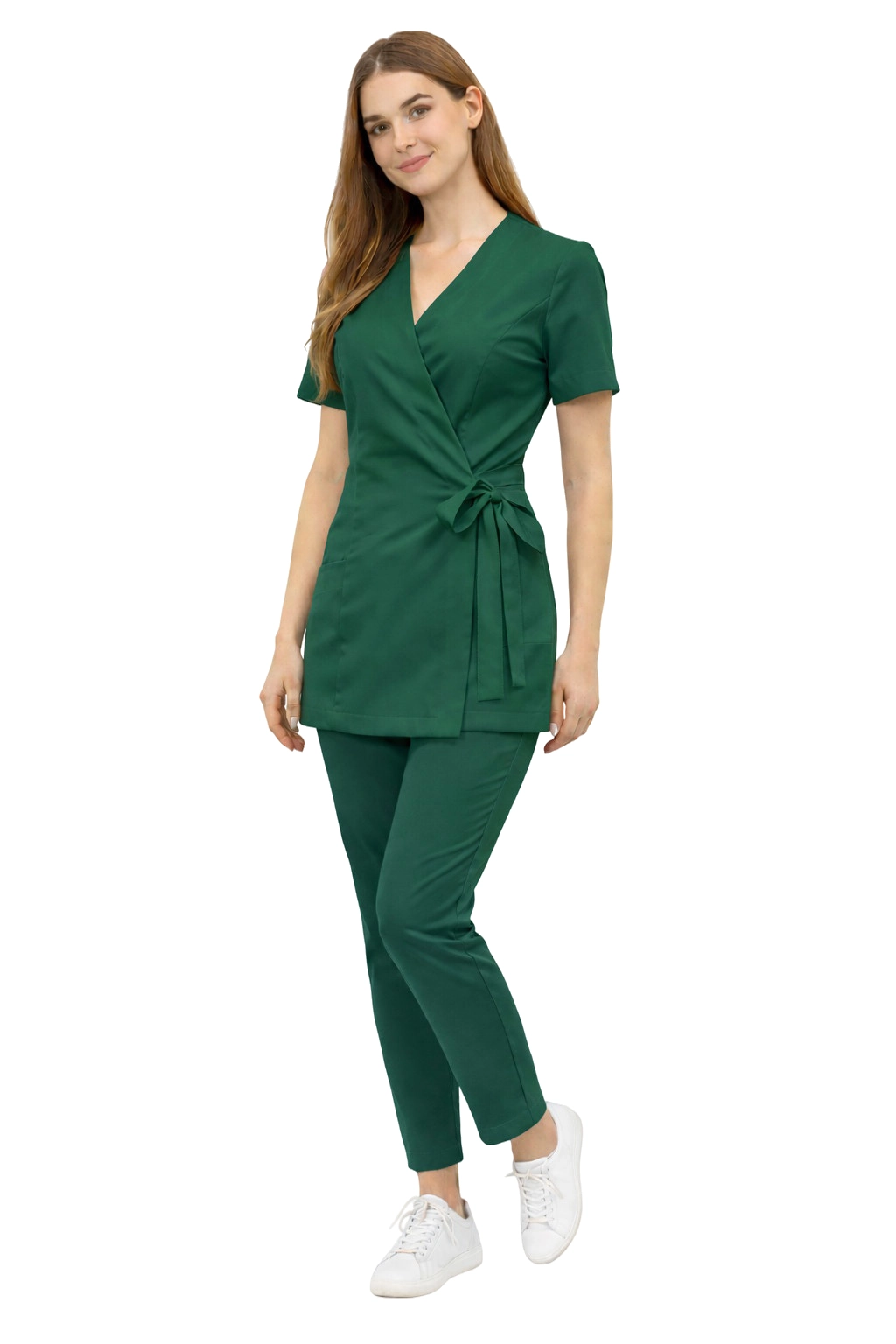 Základní sada Premium kombinuje eleganci, funkcionalitu a pohodlí - navržená s ohledem na ženy, které pracují v medicínském, kosmetickém a wellness odvětví. Skládá se z halenky s překříženým vyztužením (tunika) a kalhot Basic Premium, čímž vytváří konzistentní a stylový lékařský oblek.