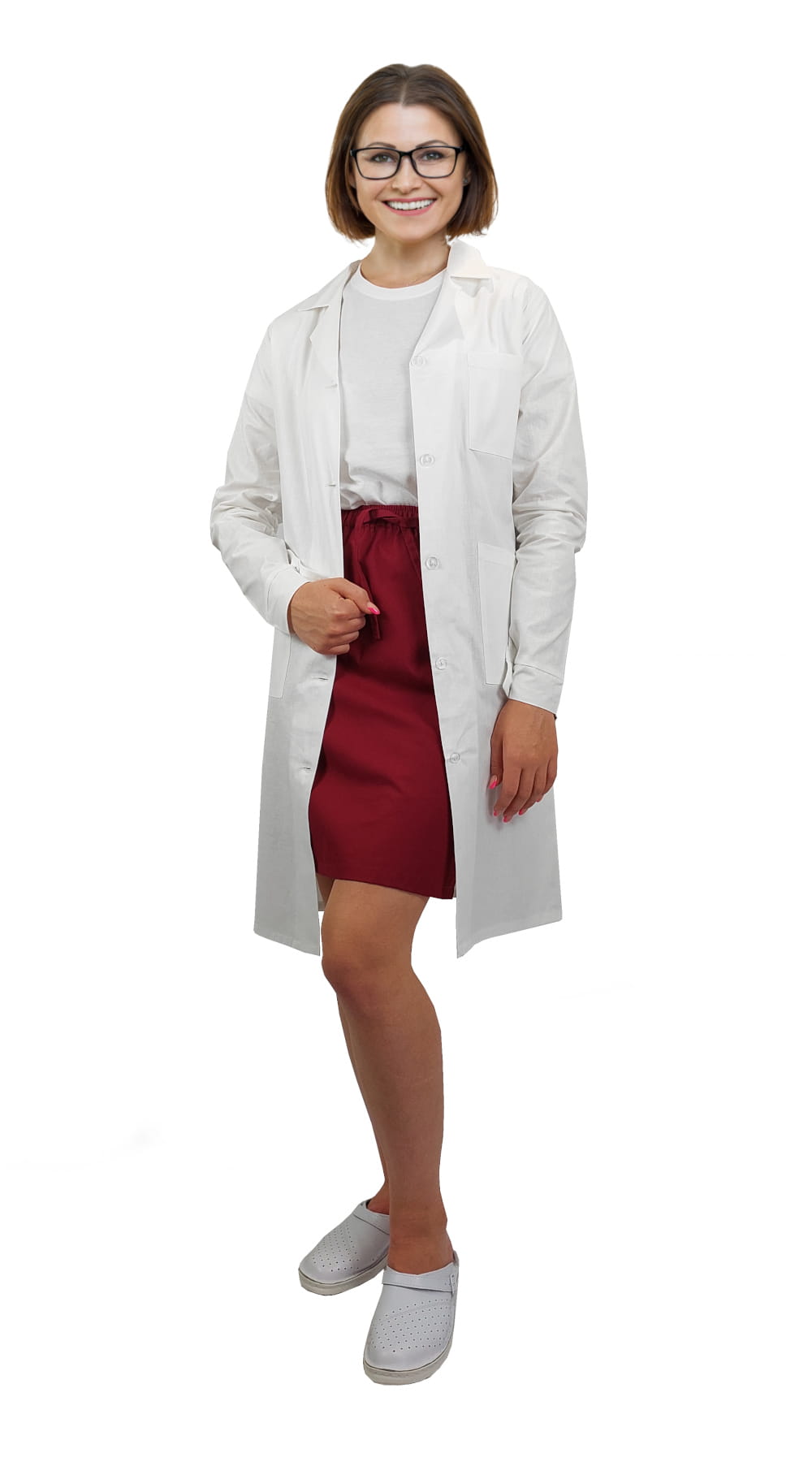 Dámský laboratorní plášť je profesionální ochranný oděv navržený pro studentky chemie, biologie, biotechnologie, farmacie a pro pracovníky laboratoří a univerzitních laboratoří. Vyrobeno z 100% bavlny o gramáži 145–150 g/m², poskytuje bezpečnost a komfort při práci s chemickými reagenty – látka se nerozpouští, což je klíčové v laboratorním prostředí.