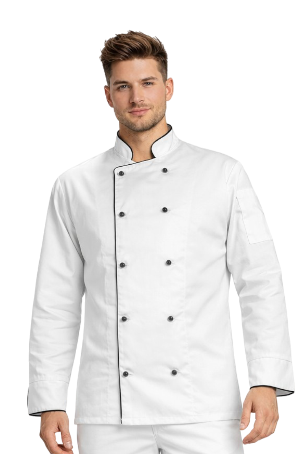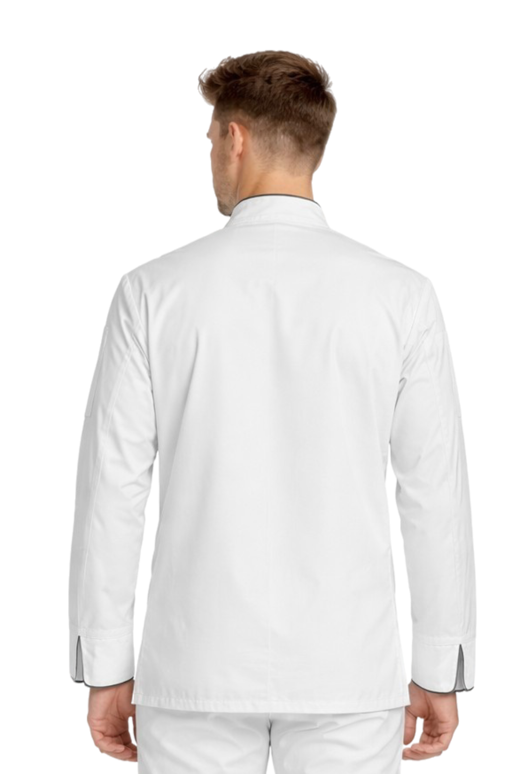 Bílá pánská kuchařská blůza s černým lemováním – gastronomická zástěra, dlouhý rukáv