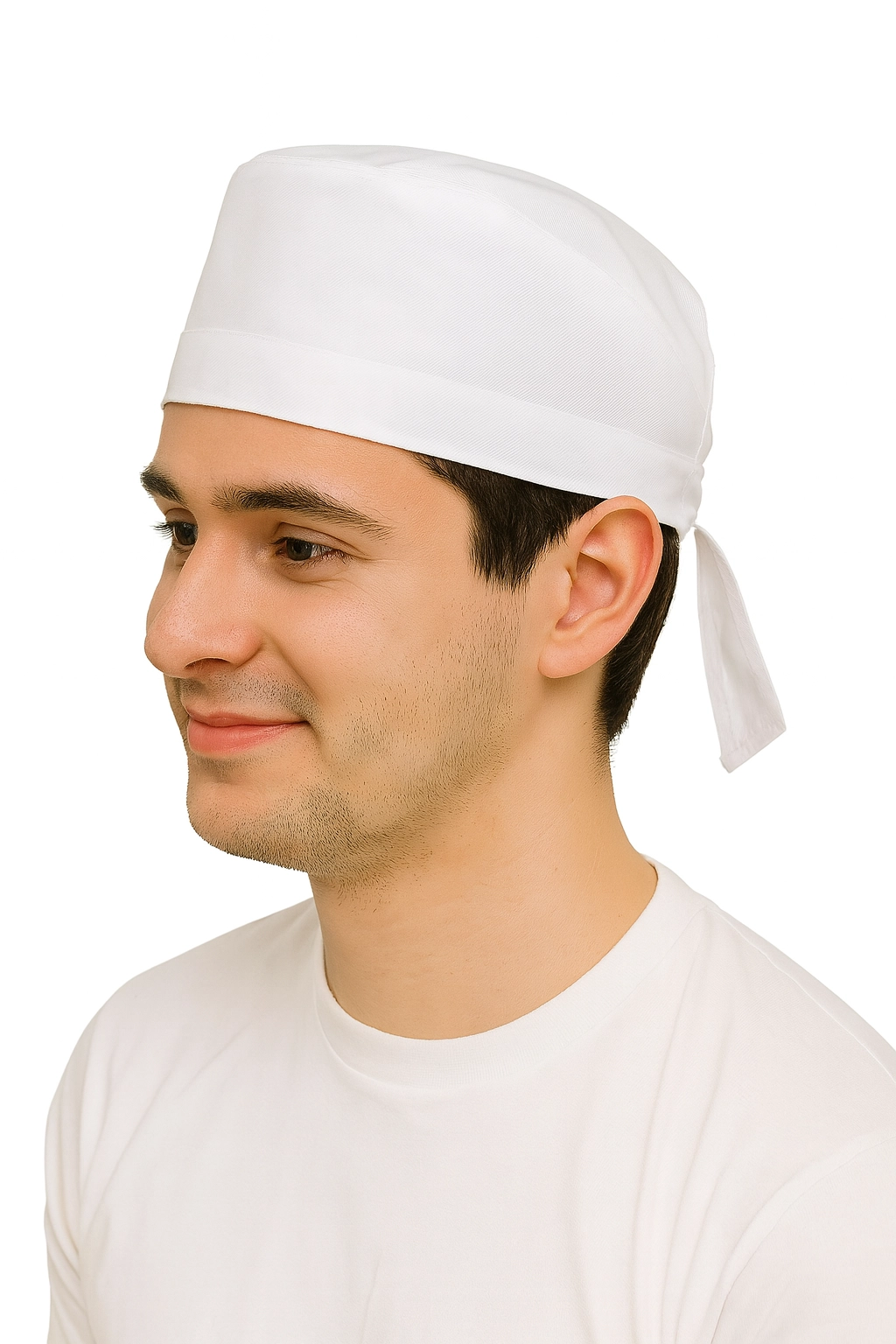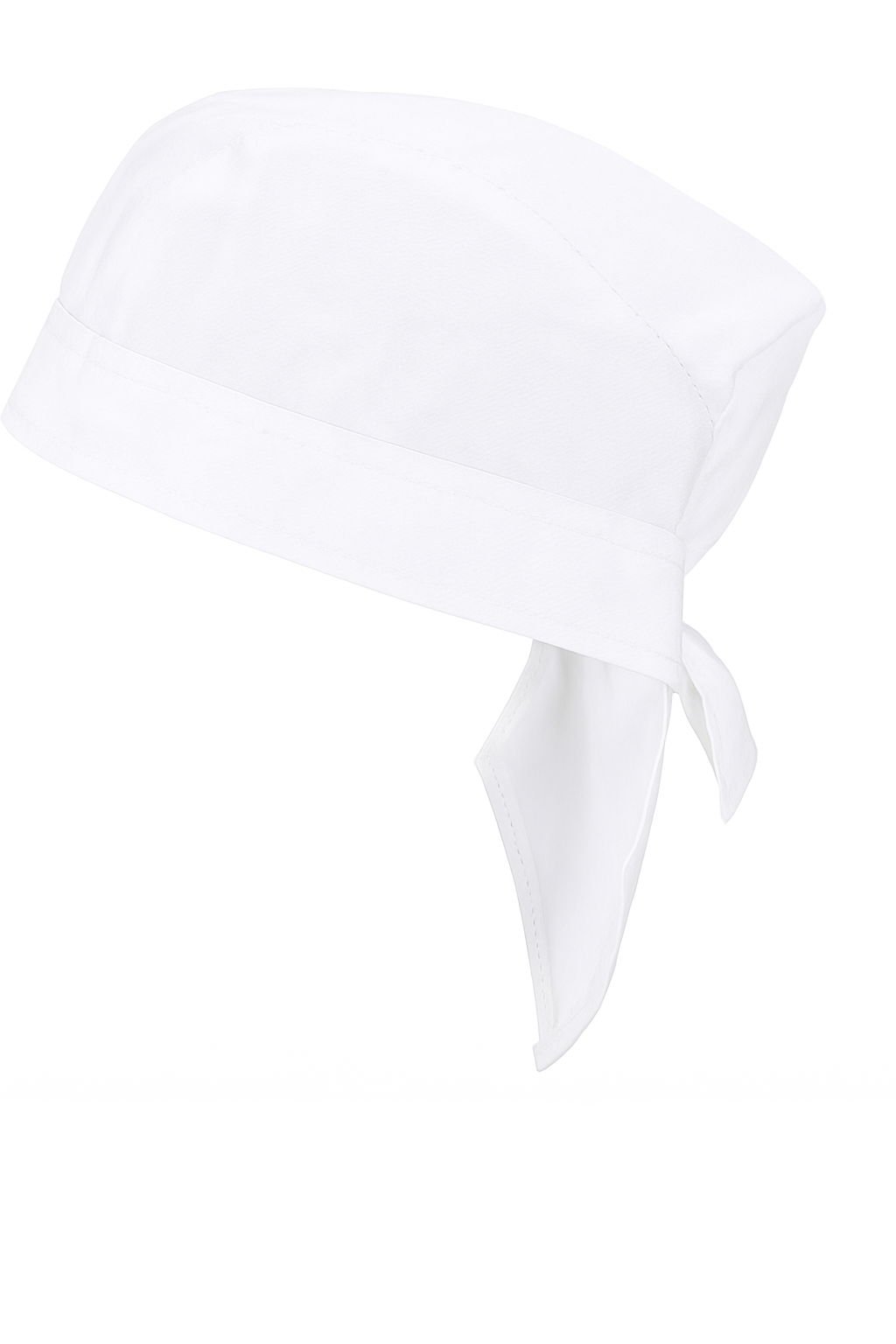 Šéfkuchařova čepice typu bandana byla navržena pro celodenní nošení. Dvě uvazovací šňůrky na zadní straně umožňují přesné přizpůsobení obvodu hlavy. Lehká a prodyšná tkanina zajišťuje náležitý oběh vzduchu, což zvyšuje pohodlí během intenzivní práce v kuchyni.