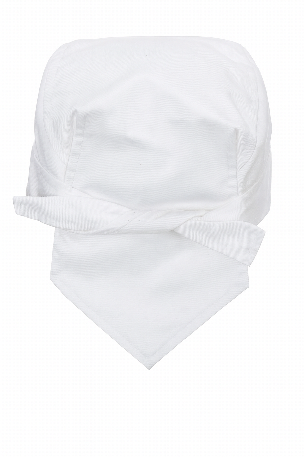 Bílá bandana zdůrazňuje hygienu a profesionální vzhled personálu a zároveň poskytuje pohodlí při práci, i při vysokých teplotách.