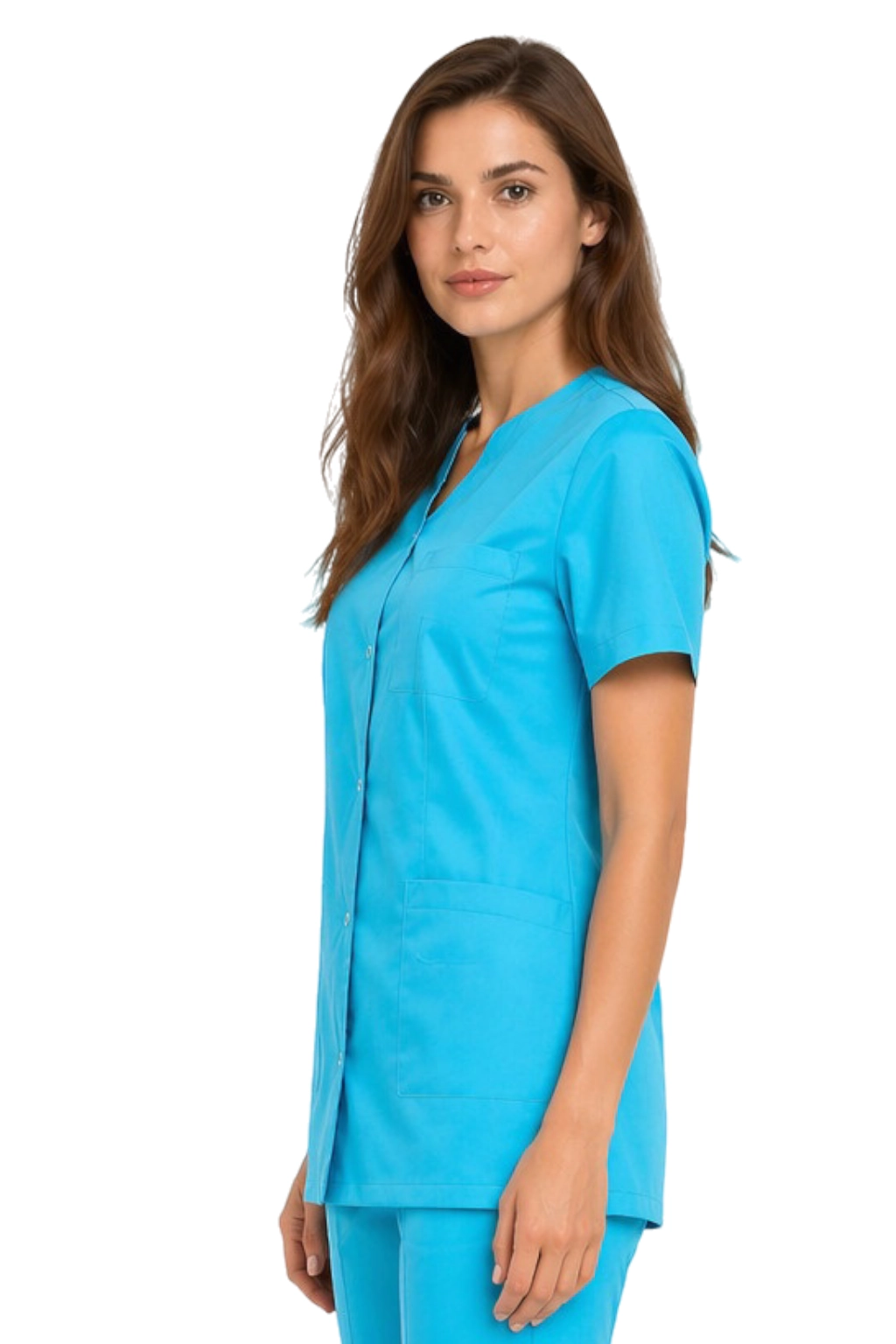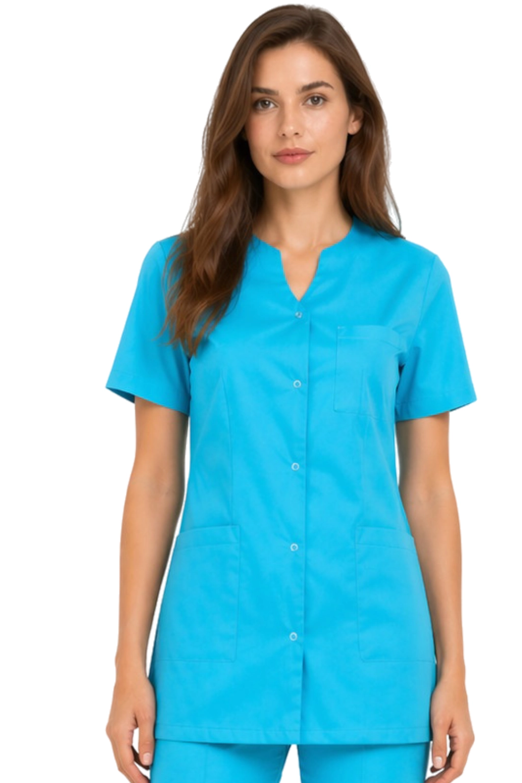 Nabízíme elegantní lékařský a kosmetický blejzr pro ženy v tyrkysové barvě, navržený s ohledem na profesionálky, které chtějí vypadat stylově a cítit se pohodlně při práci. Naše řada MEDIACAL BEAUTY kombinuje funkčnost s módním designem, což ji činí ideální pro zdravotnictví, kosmetické a kadeřnické salony nebo kancelář. Pohodlné střihy a c carefully conducted finishing is that every woman-fighter appreciates. Zaměřte se na kvalitu a eleganci ve své každodenní práci!