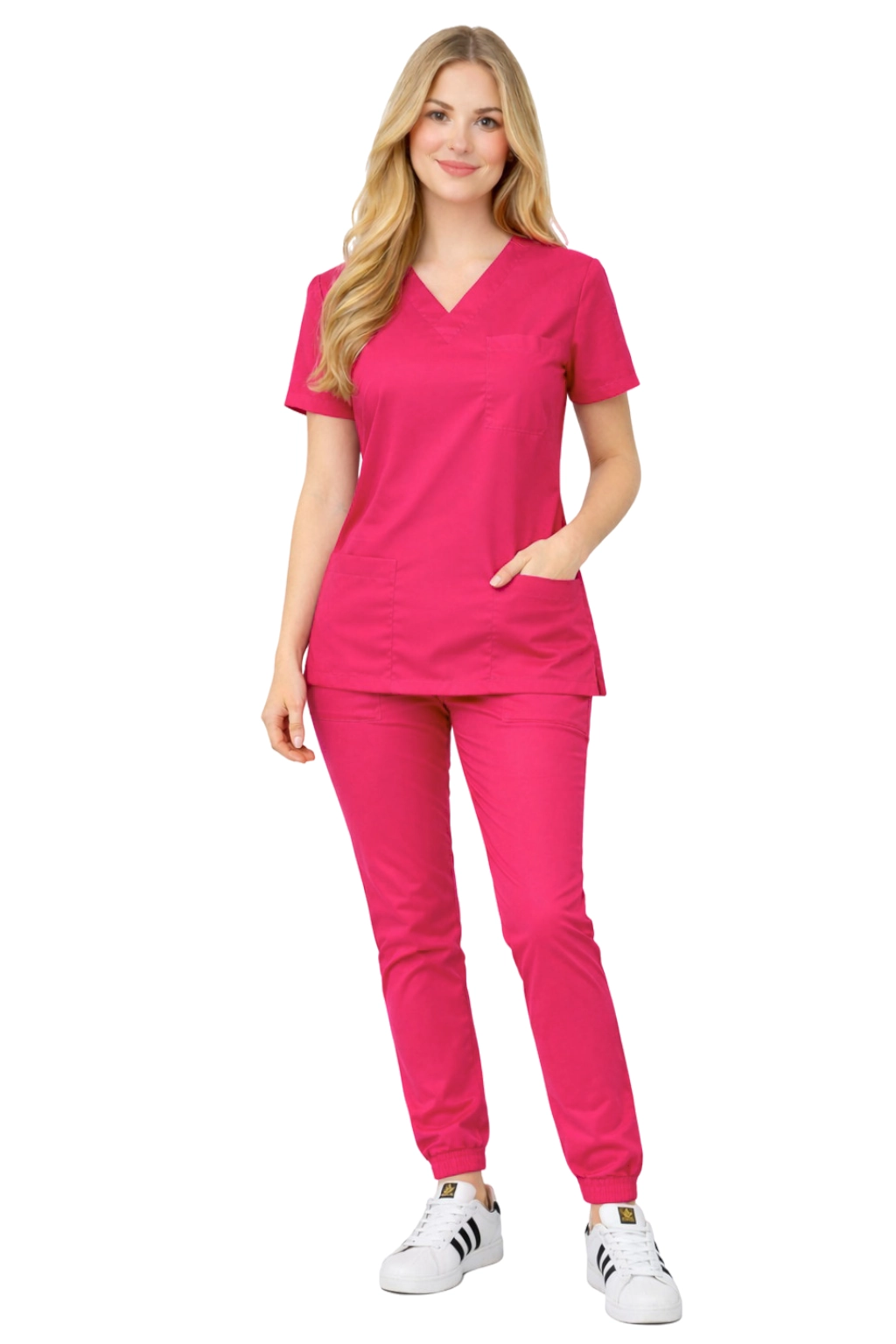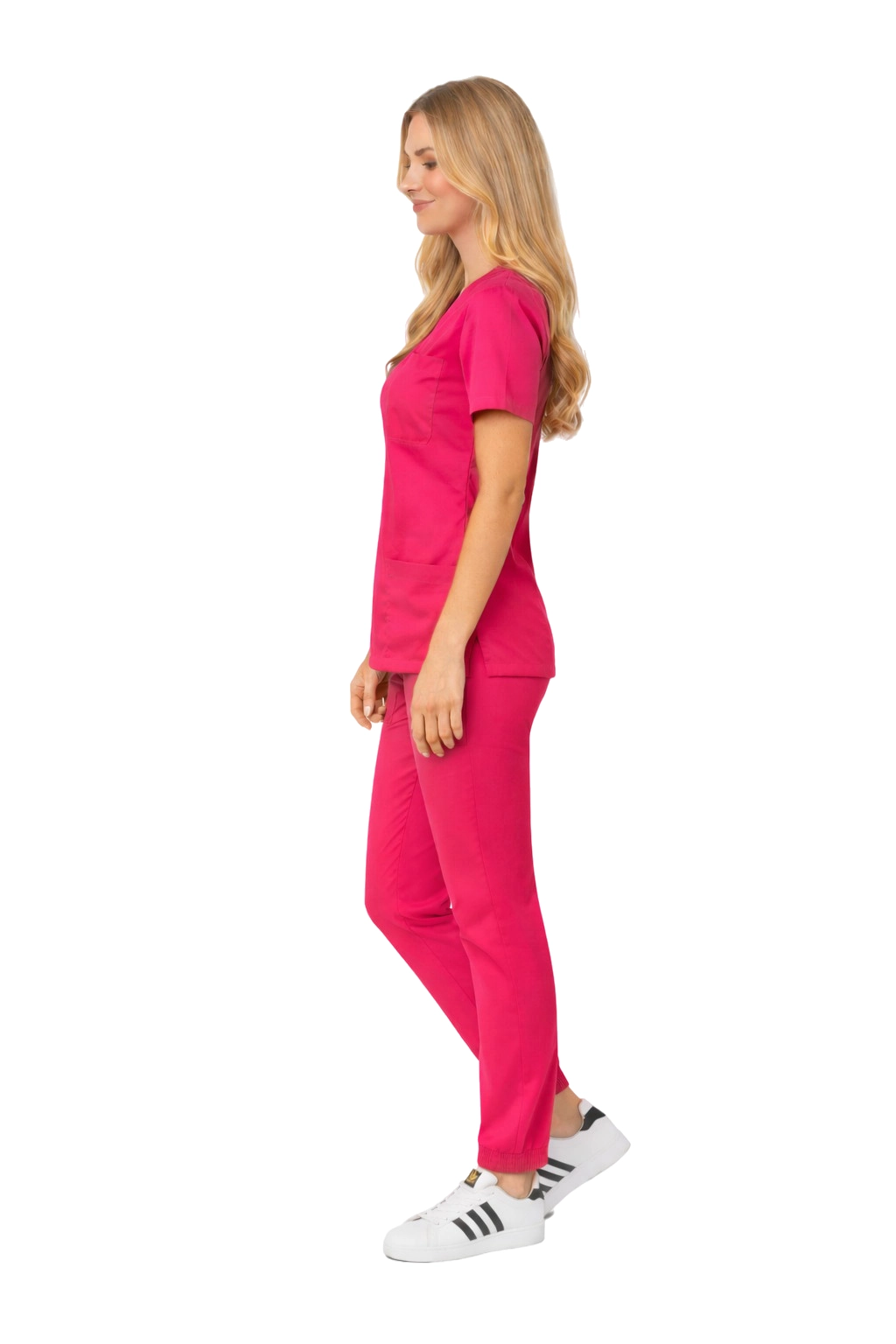 Dámský lékařský set FLEX v barvě fuchsie je návrhem pro ženy, které ocení kombinaci stylu, pohodlí a funkčnosti. Set se vyznačuje moderním střihem inspirovaným streetwear módou - spojuje profesionální vzhled s pohodlím typickým pro sportovní oděvy.