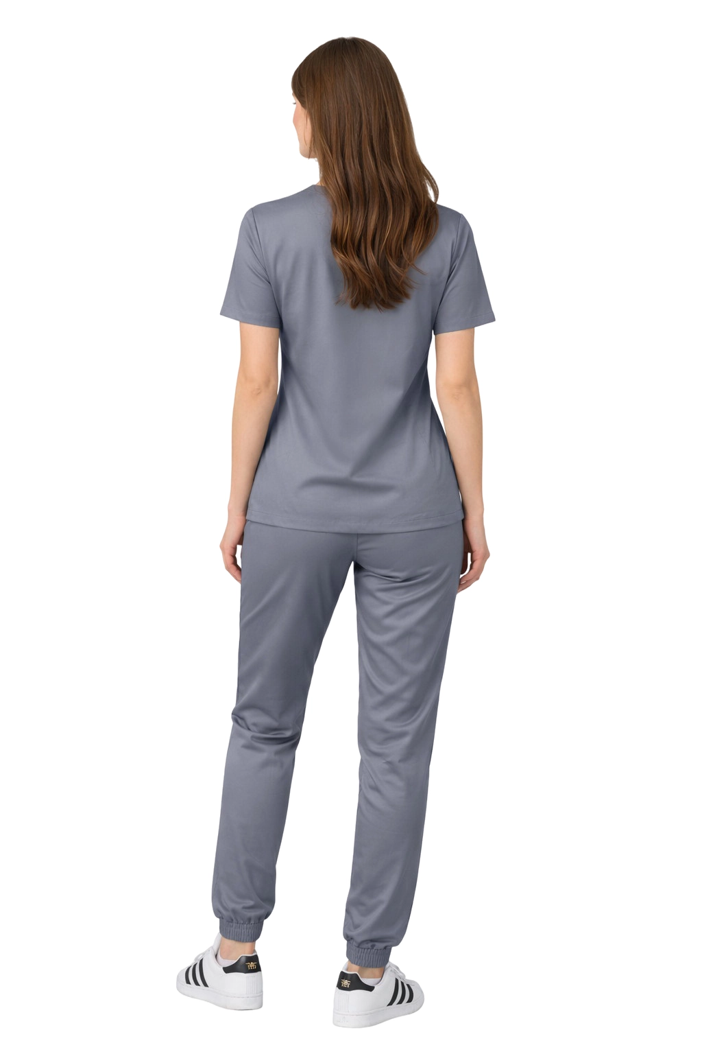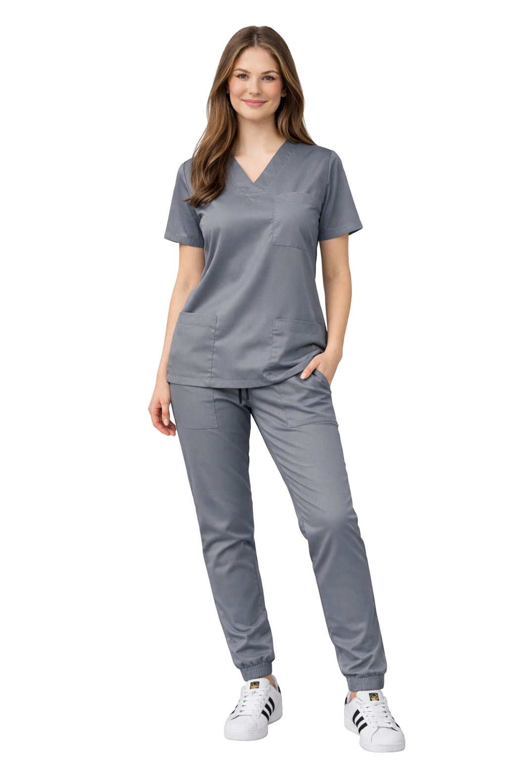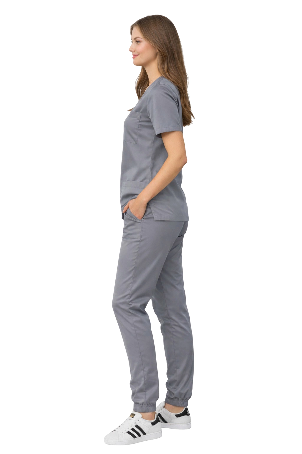Elastický lékařský set pro ženy FLEX v šedé barvě je navržen pro ženy, které oceňují spojení stylovosti, pohodlí a funkčnosti. Set se vyznačuje moderním střihem inspirovaným streetwear módou - spojuje profesionální vzhled s pohodlím typickým pro sportovní oblečení.